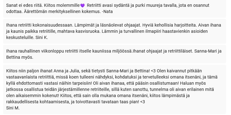 Retriittipaikkoja on rajoitetusti - joten jos kuulit kutsun, varaa omasi ajoissa! Olisi ihana nähdä sinut mukana! <3
